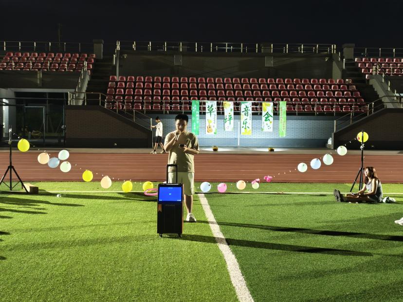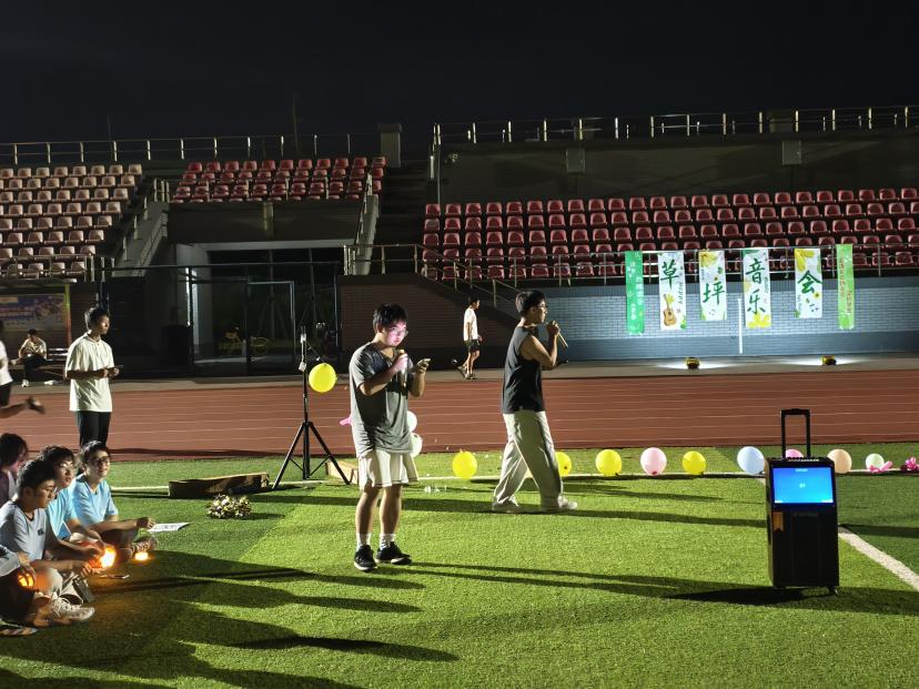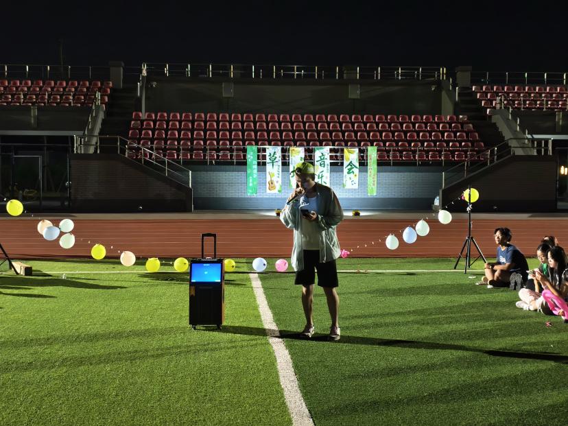 星空为幕,歌声寄情。傍晚六点,操场成为活动主场。没有璀璨灯光,却有繁星点缀夜空;没有专业音响,却有真诚唱响初心。星空音乐会演绎出青春独有的纯粹与热烈:《江南》旋律响起,引发全场跟唱,手机闪光灯汇聚成地上银河;《光亮》歌声清亮高昂,宛若月光倾泻大地。在这里,每个人都是听众,更是这场月光盛宴的共创者。