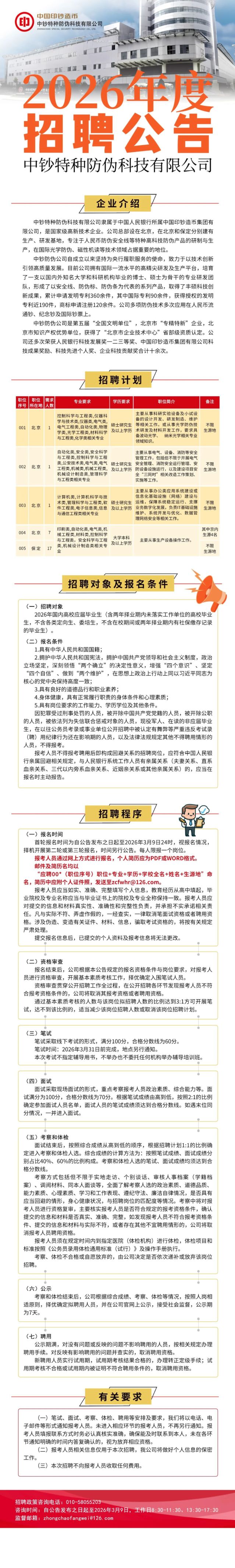 院2026届就业信息【70】——中钞特种防伪科技有限公司