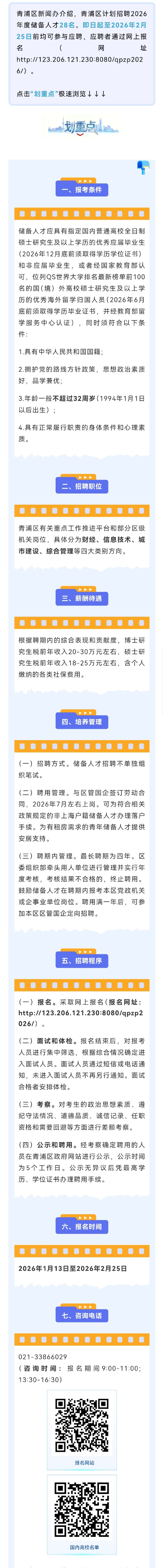 院2026届就业信息【76】——青浦区计划招聘2026年度储备人才